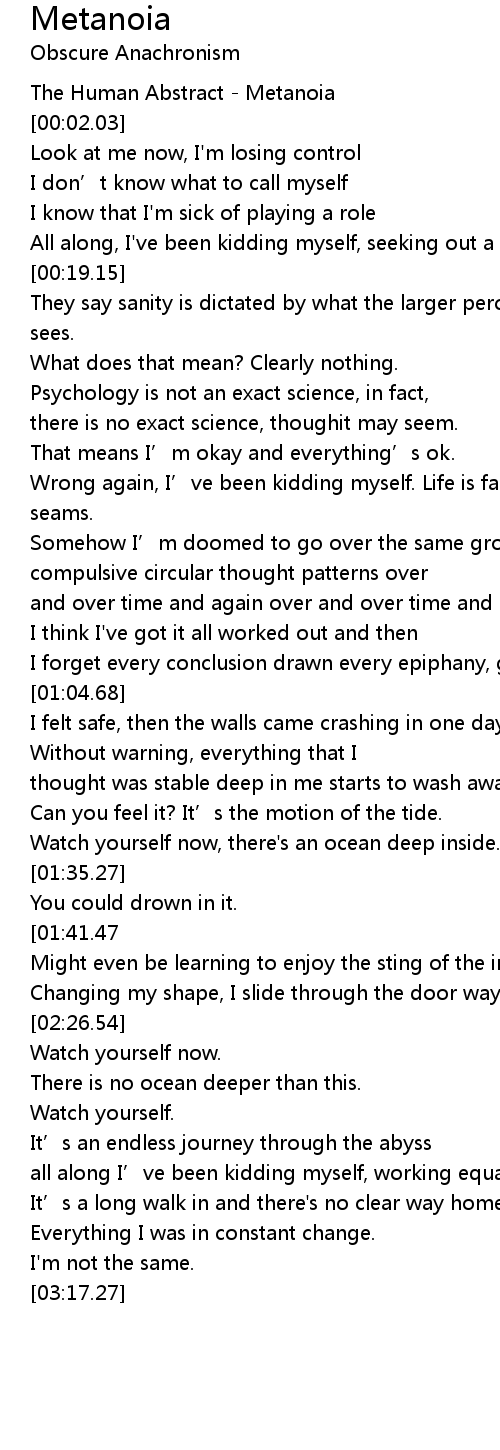 | [00:01.08] | The Human Abstract Metanoia |