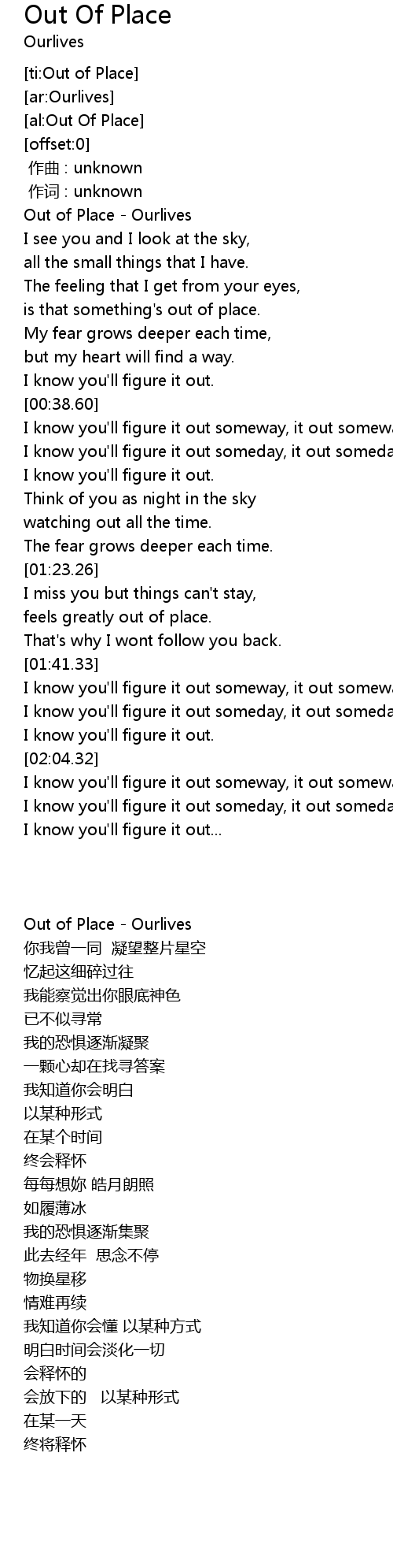 | [00:00.48] | Out of Place - Ourlives |