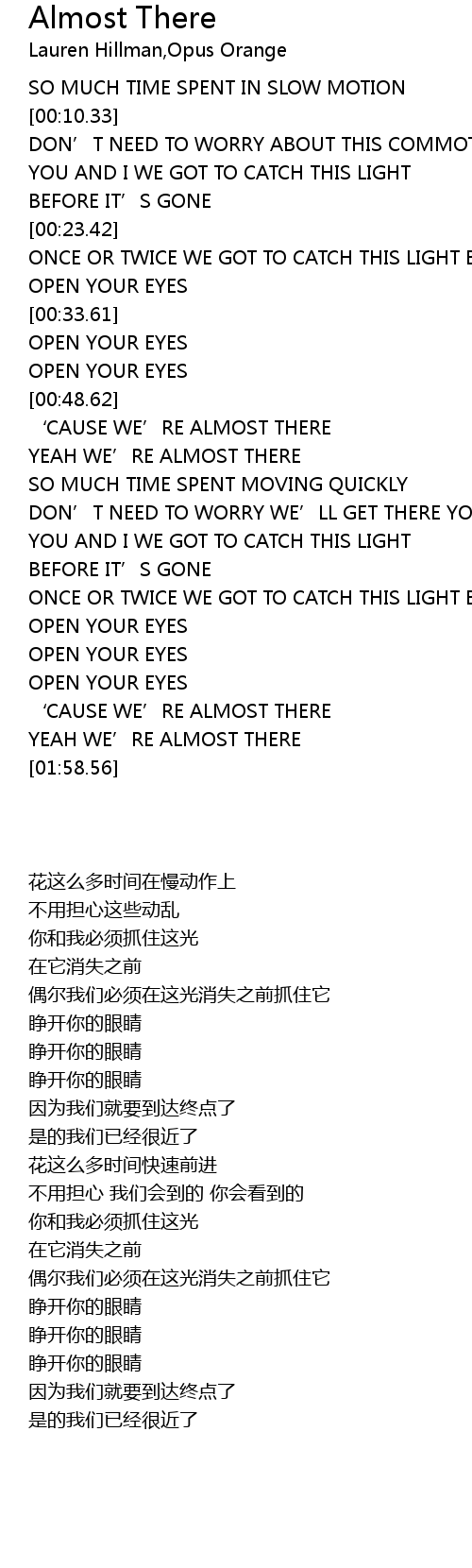 | [00:49.73] | ‘CAUSE WE’RE ALMOST THERE |