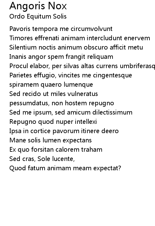Silentium noctis animum obscuro afficit metu |