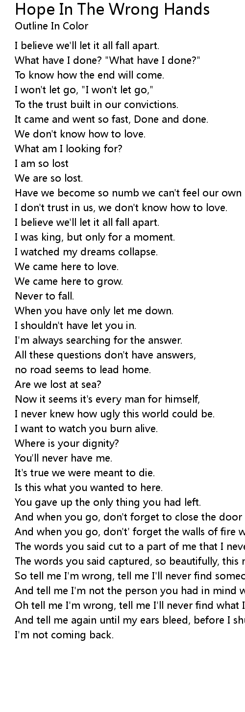 Oh tell me I'm wrong, tell me I'll never find what I am looking for. |