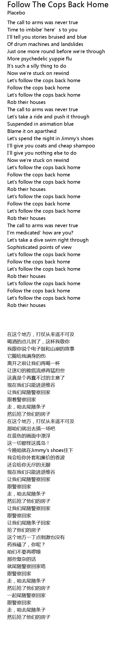 | 歌曲 | Follow The Cops Back Home |