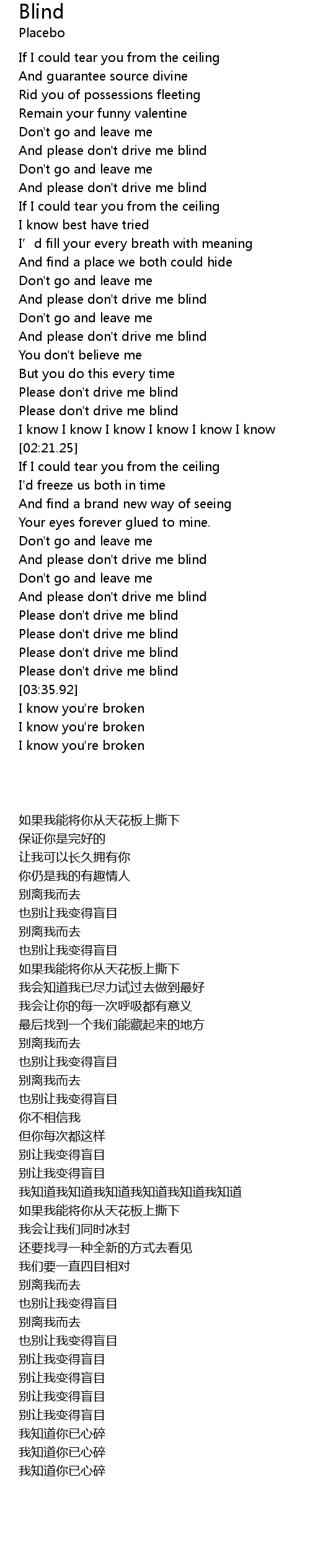 | [03:34.48] | Please don't drive me blind |
