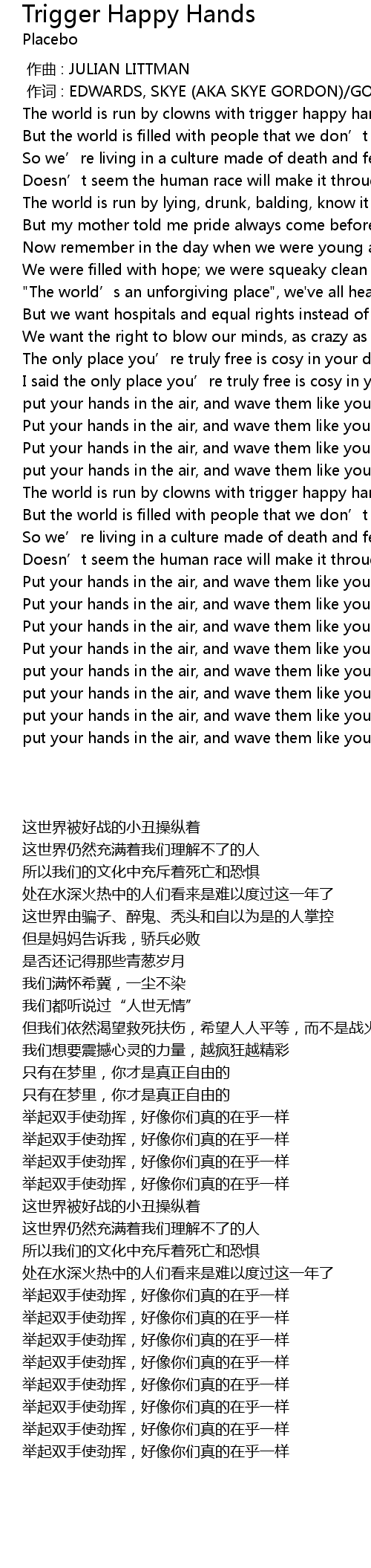 | [01:52.68] | The world is run by clowns with trigger happy hands |