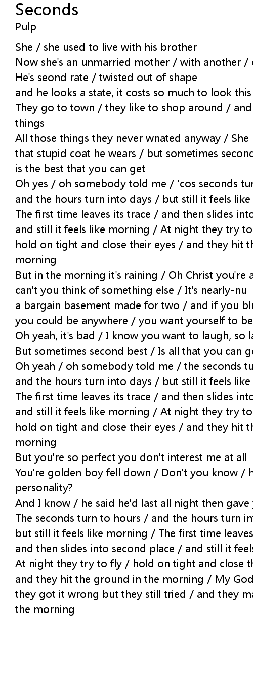 Oh yes / oh somebody told me / 'cos seconds turn to hours |