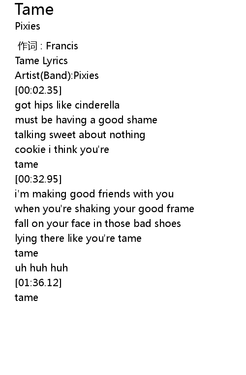 | [00:01.36] | Tame Lyrics |