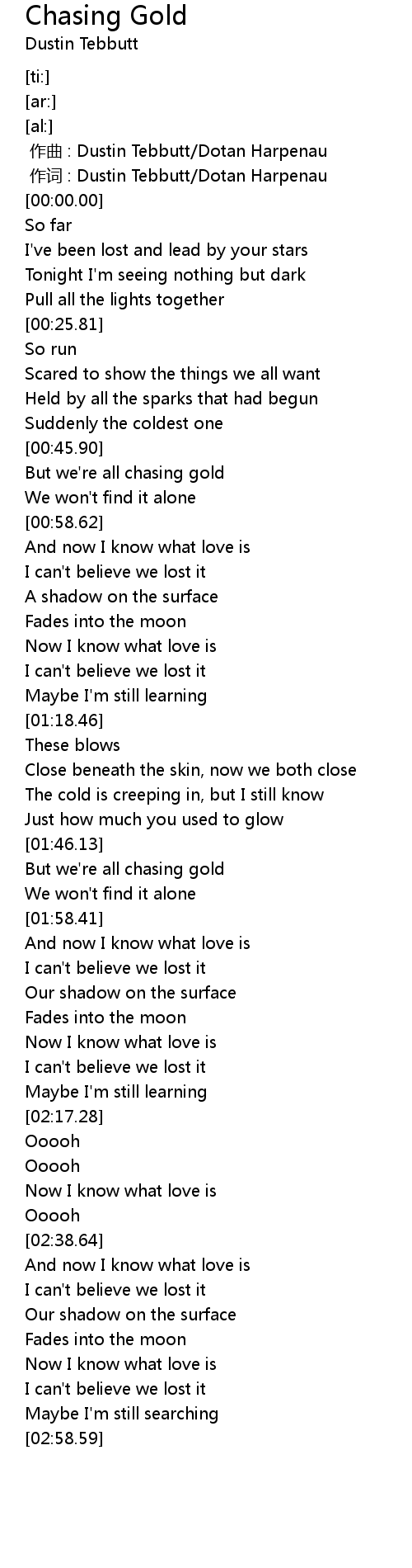 | [00:49.74] | But we're all chasing gold |