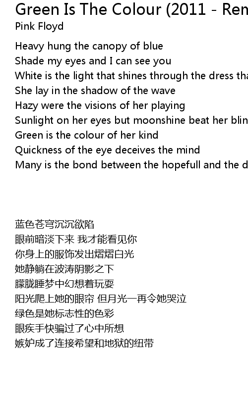| 歌曲 | Green Is The Colour (2011 - Remaster) |