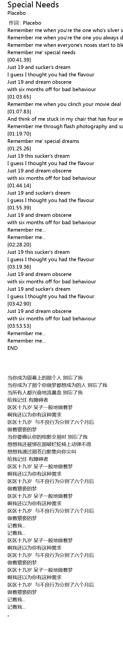 | [00:00.00] | 作词 : Placebo |