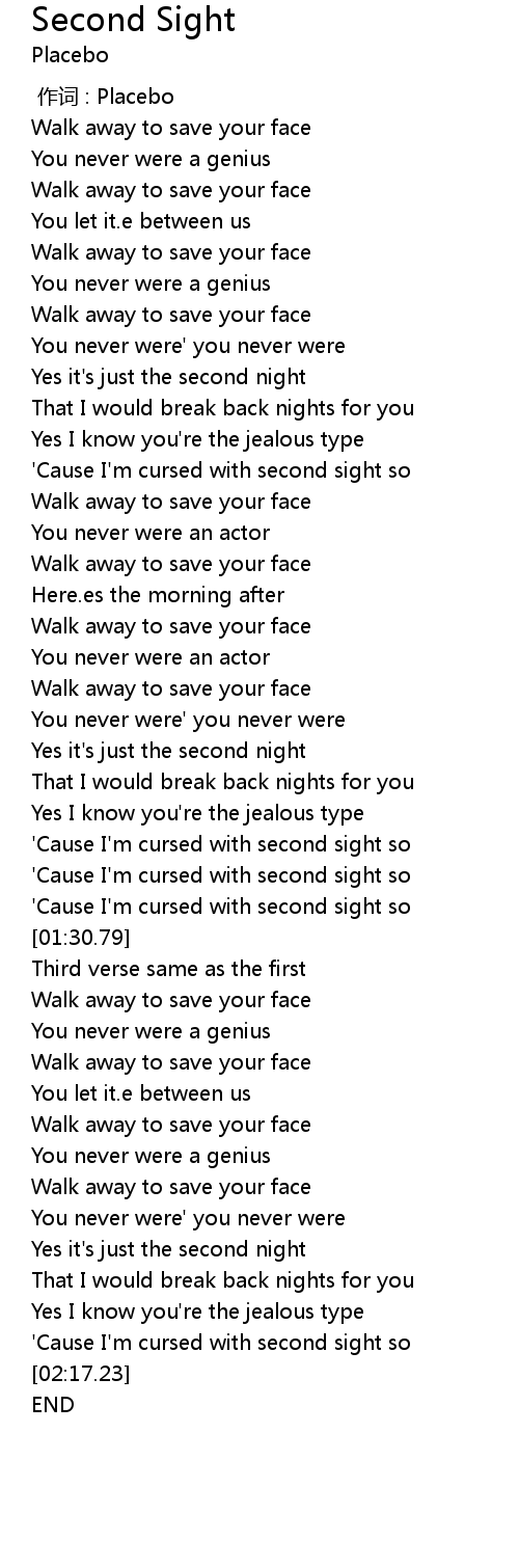 | [00:00.00] | 作词 : Placebo |