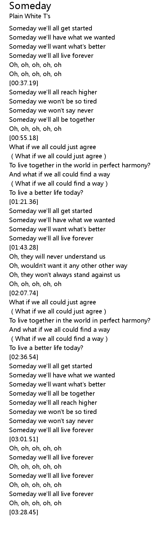| [01:03.08] | To live together in the world in perfect harmony? |