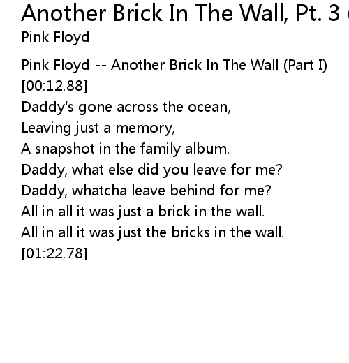 | [00:00.00] | Pink Floyd -- Another Brick In The Wall (Part I) |