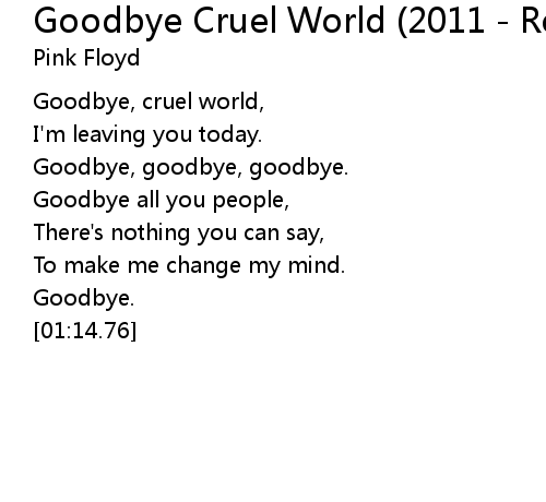 | 歌曲 | Goodbye Cruel World (2011 - Remaster) |