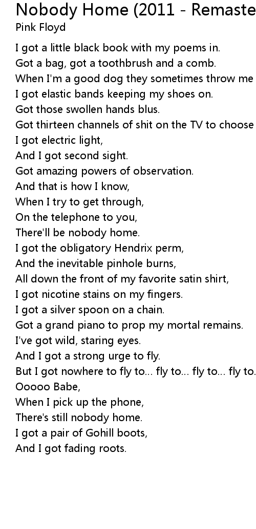 | 歌曲 | Nobody Home (2011 - Remaster) |
