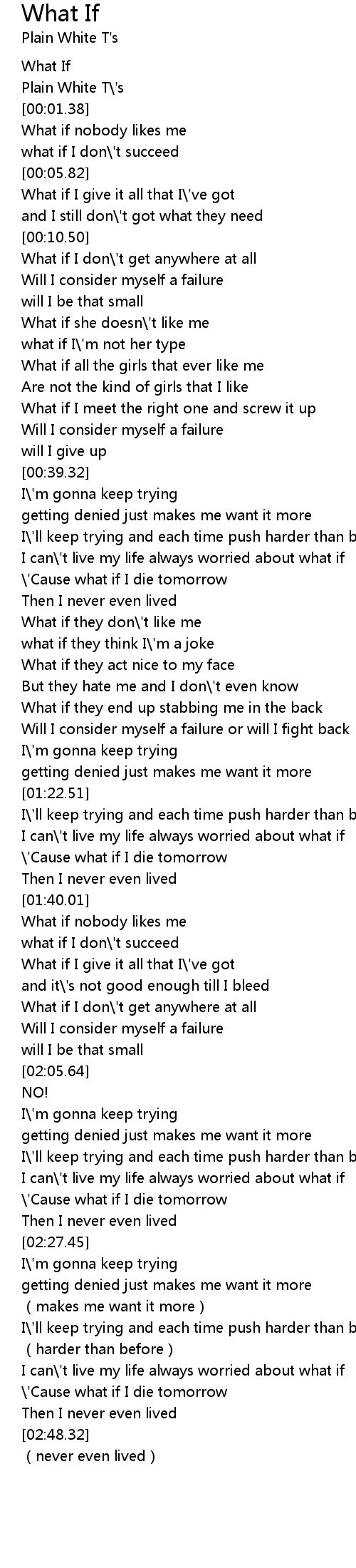 | [01:48.51] | What if nobody likes me |