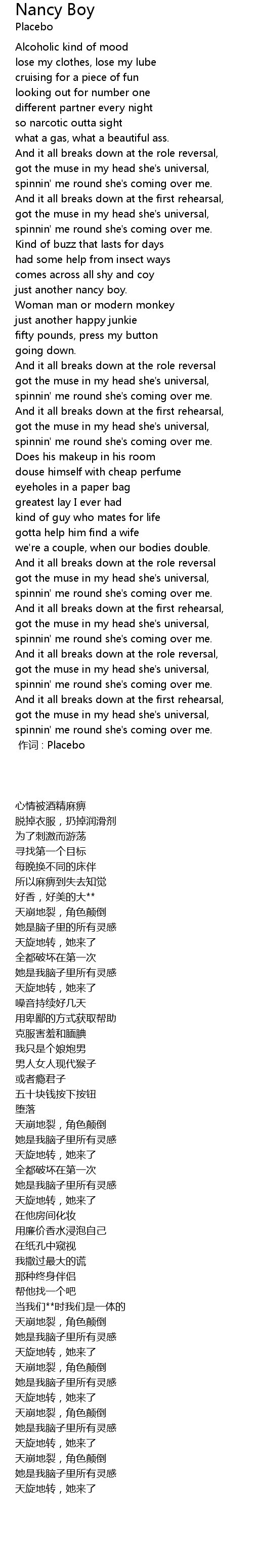 | [00:00.00] | 作词 : Placebo |