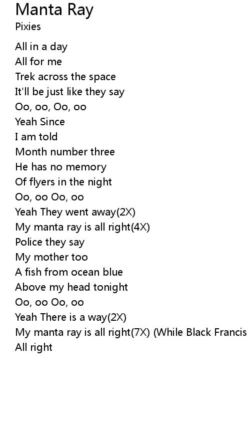 | My manta ray is all right(7X) (While Black Francis screams "All right!") | |