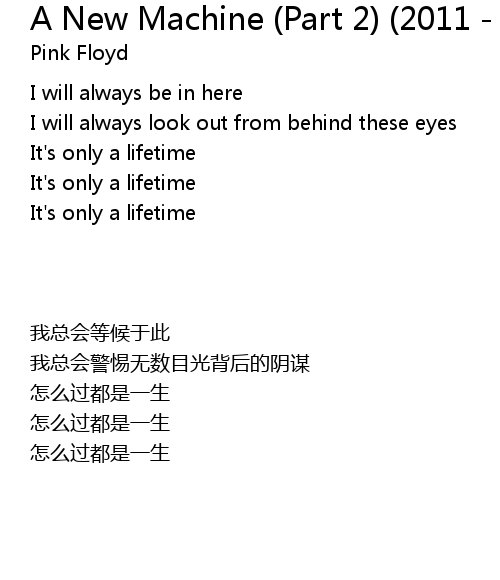 | 歌曲 | A New Machine (Part 2) (2011 - Remaster) |