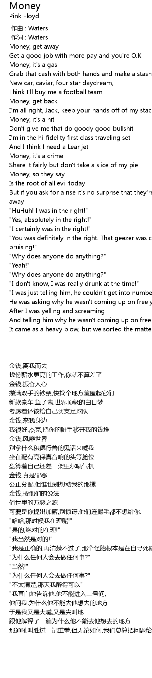 | [01:01.19] | 攥满双手的钞票,快找个地方藏匿起它们 |