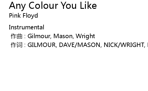 | 歌曲 | Any Colour You Like |