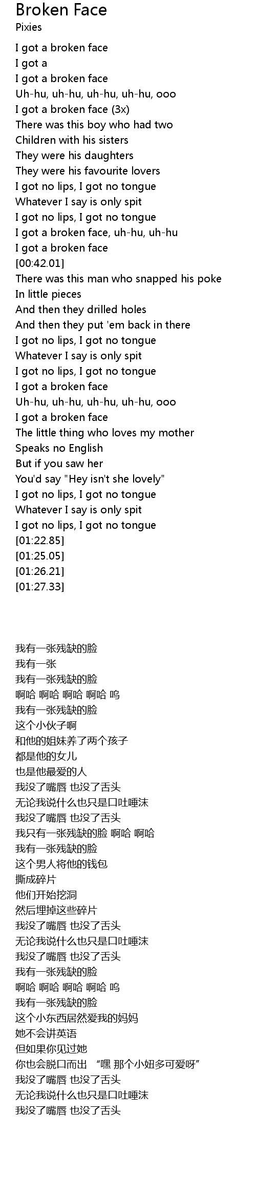 I got a broken face (3x) |