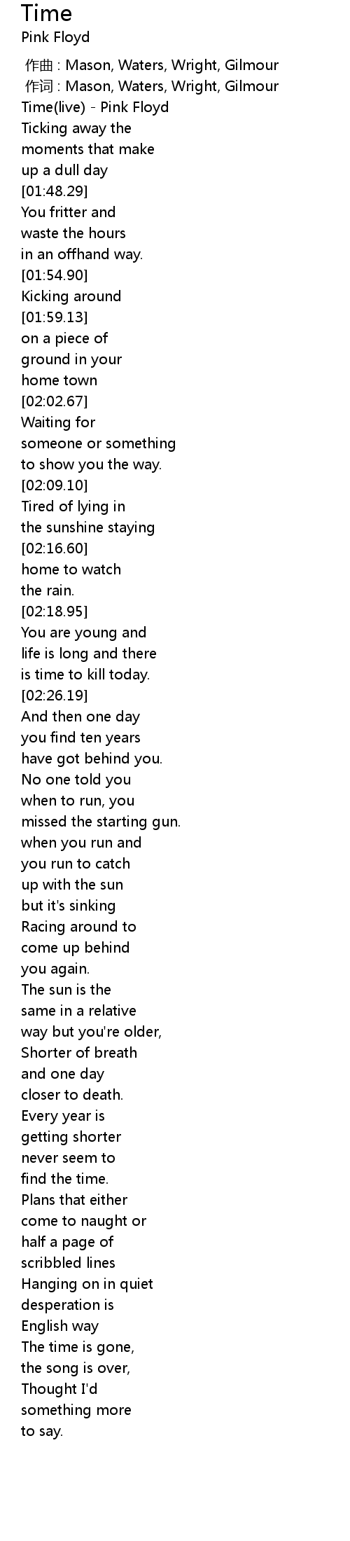 | [00:02.49] | Time(live) - Pink Floyd |
