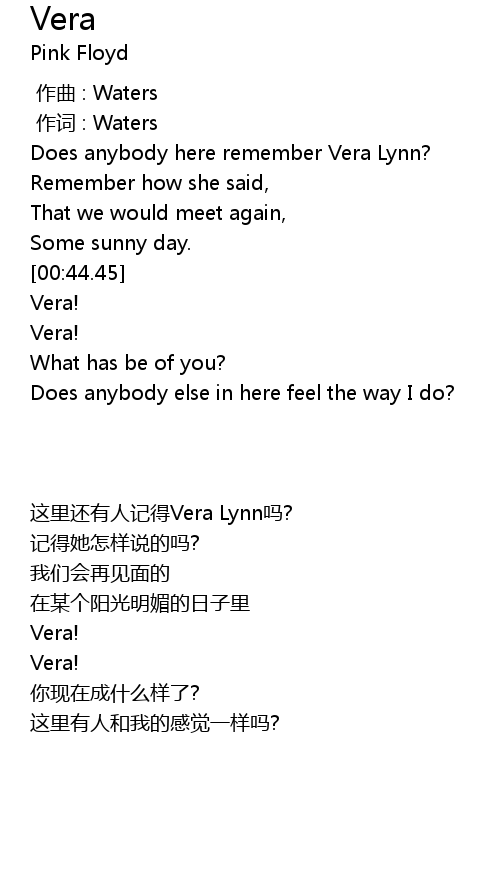 | [00:22.31] | 这里还有人记得Vera Lynn吗? |