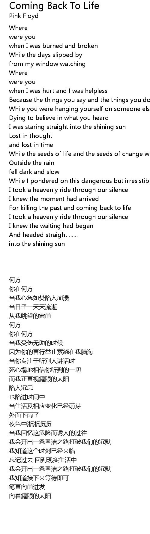For killing the past and coming back to life |