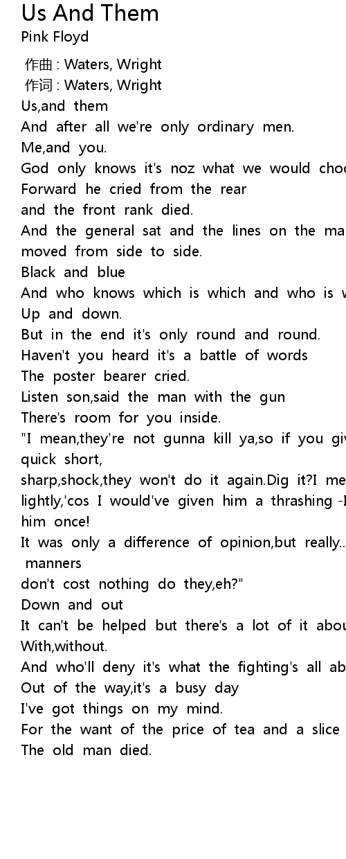 | 歌曲 | Us And Them |