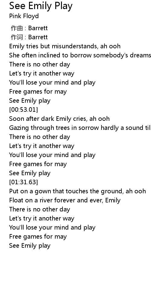 | [00:43.82] | See Emily play |