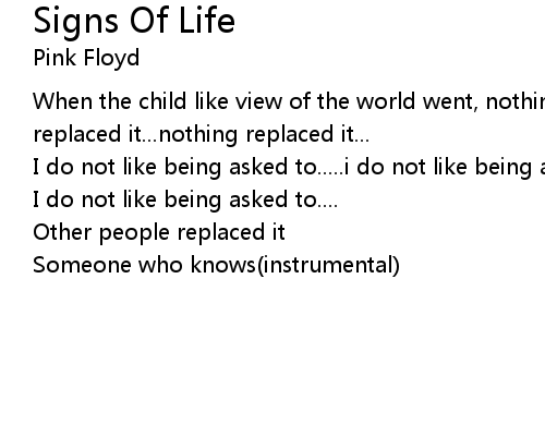 | 歌曲 | Signs Of Life |