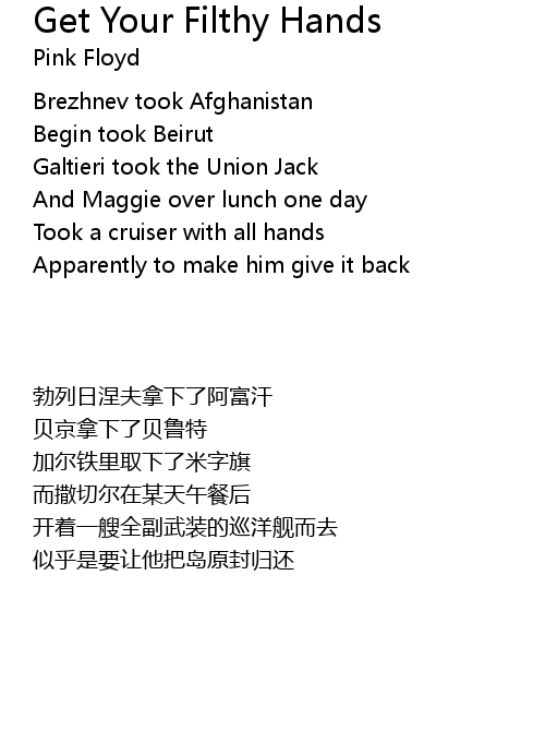 | 歌曲 | Get Your Filthy Hands |