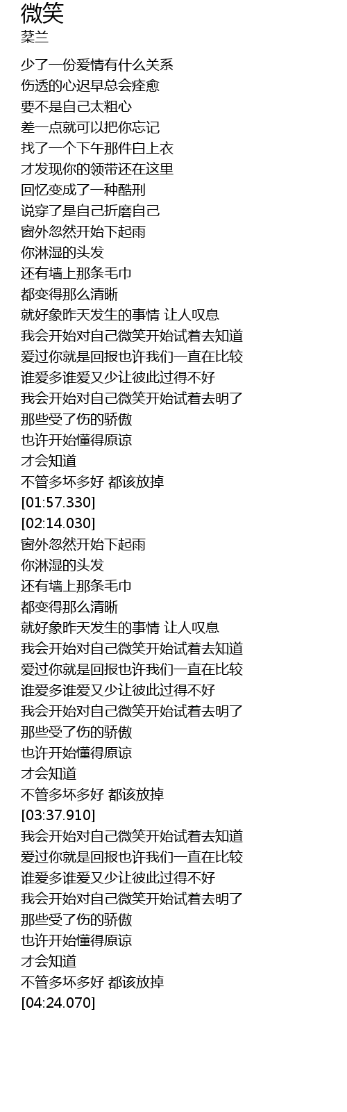 | [04:00.430] | 我会开始对自己微笑开始试着去明了 |