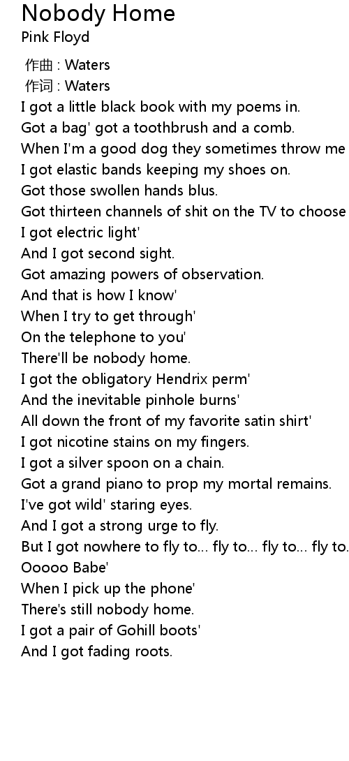| 歌曲 | Nobody Home |