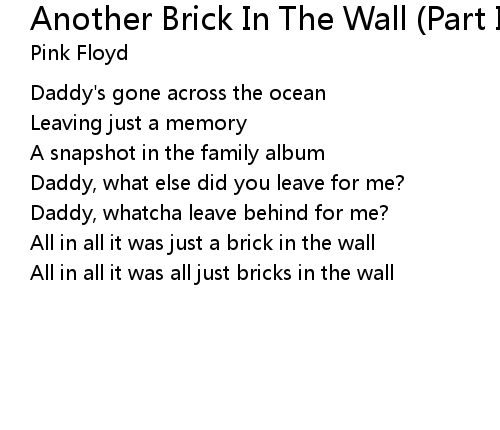 | 歌曲 | Another Brick In The Wall (Part I) |