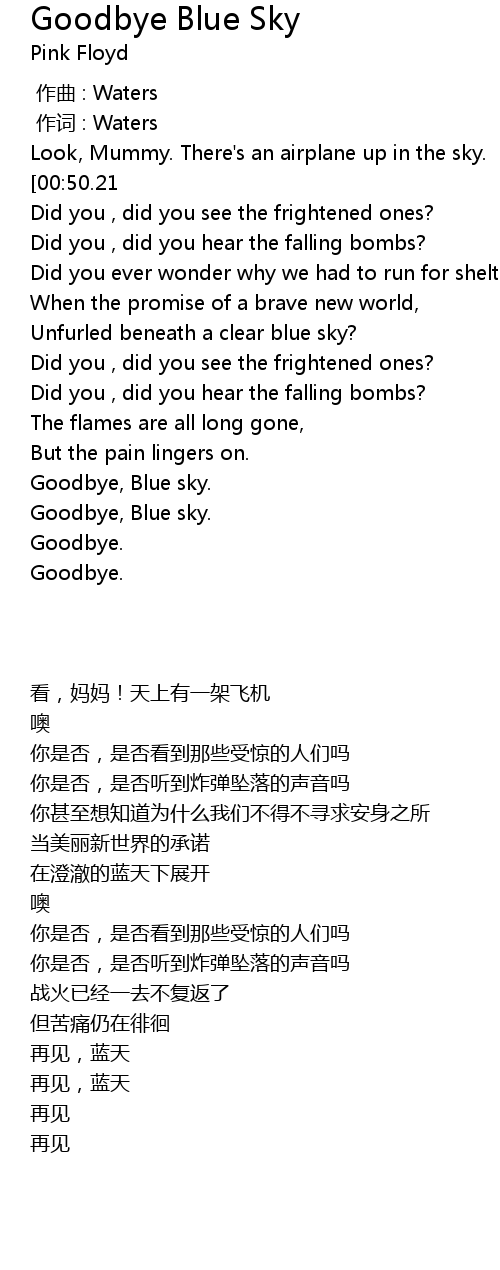 | 歌曲 | Goodbye Blue Sky |