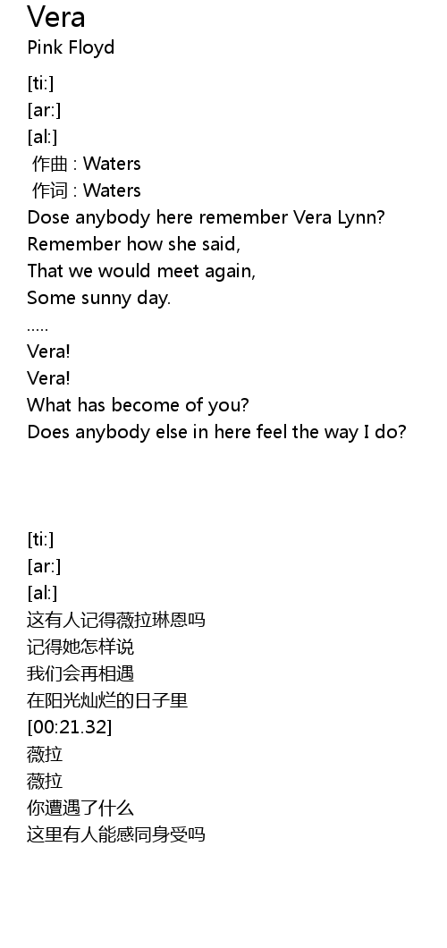 | [00:00.00] | Dose anybody here remember Vera Lynn? |