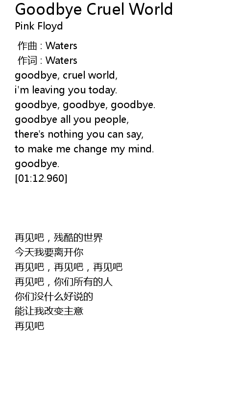 | 歌曲 | Goodbye Cruel World |