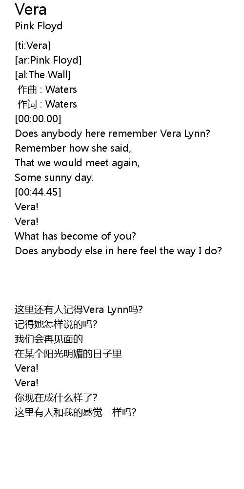 | [00:20.31] | Does anybody here remember Vera Lynn? |