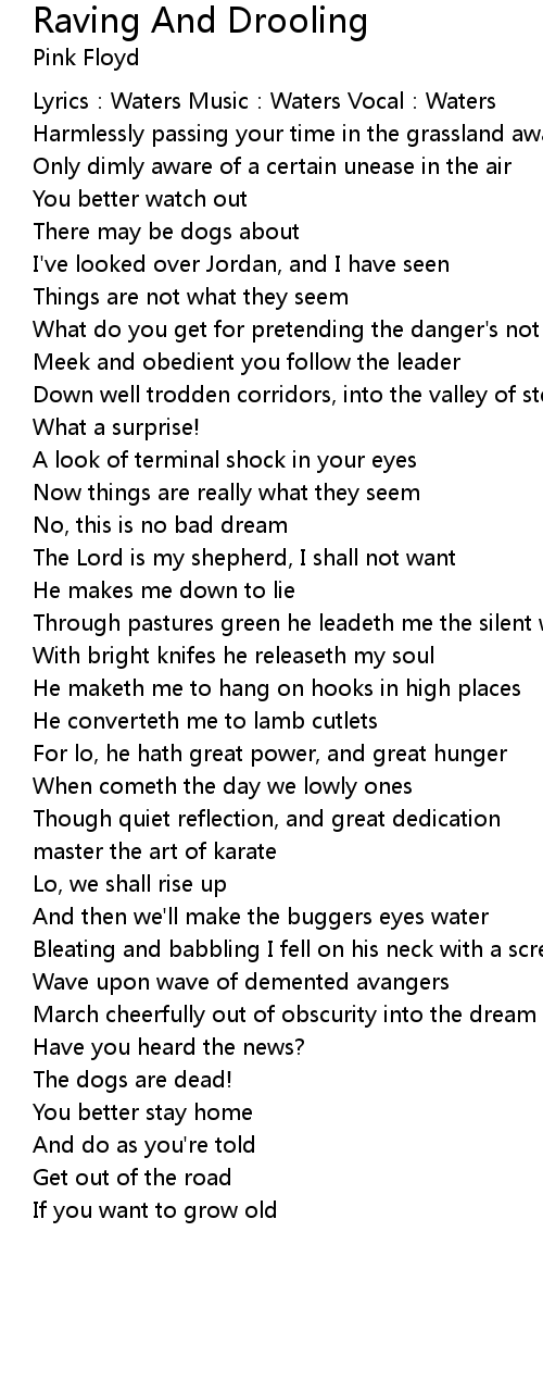| Lyrics:Waters Music:Waters Vocal:Waters | |