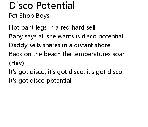 | 歌曲 | Disco Potential |