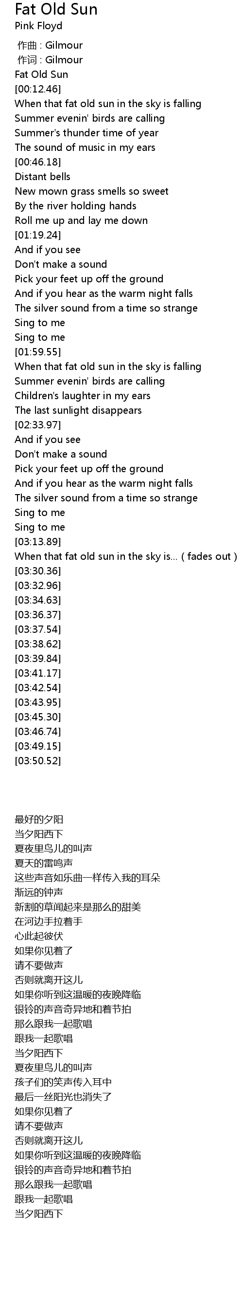 | [00:05.38] | Fat Old Sun |