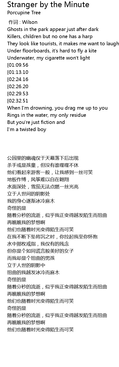| [03:34.50][02:26.20][01:18.10] | I seemI' m getting stranger by the minute |