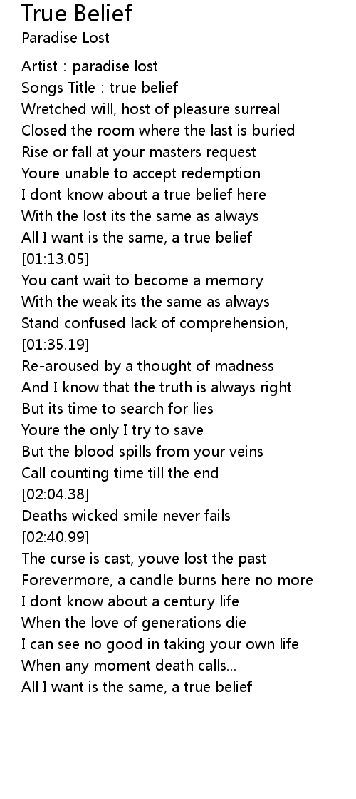 | [00:03.18] | Songs Title:true belief |