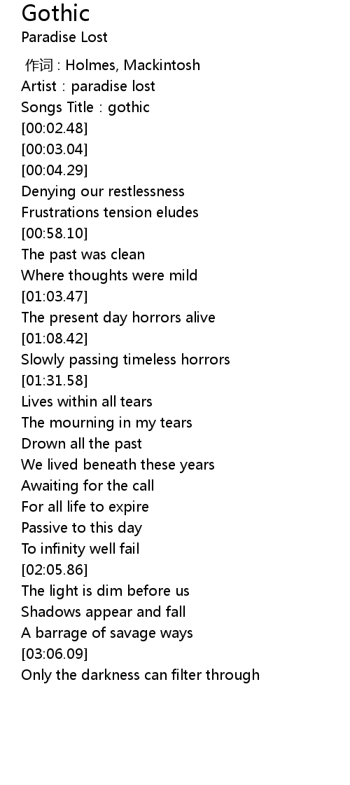 | [00:01.67] | Songs Title: gothic |