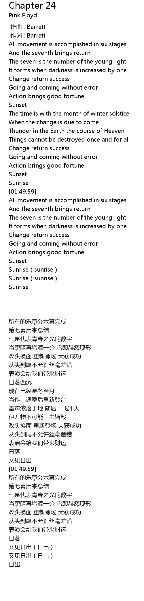 | [01:34.89] | 日落 |