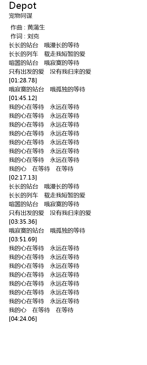 | [01:30.69] | 哦寂寞的站台 哦孤独的等待 |