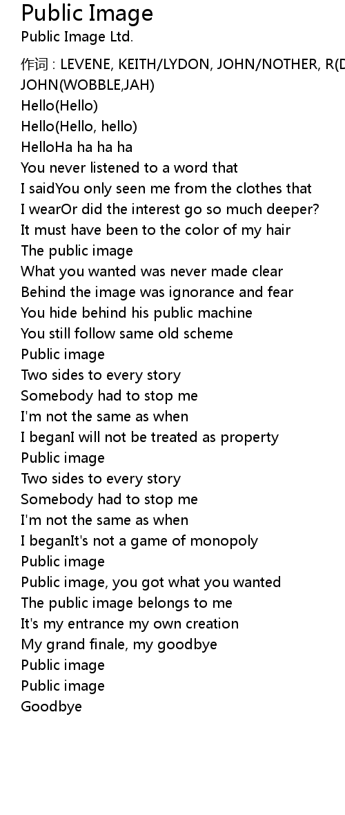 | 作词 : LEVENE, KEITH/LYDON, JOHN/NOTHER, R(DUDANSKI,RICHARD)/WARDLE, JOHN(WOBBLE,JAH) | |