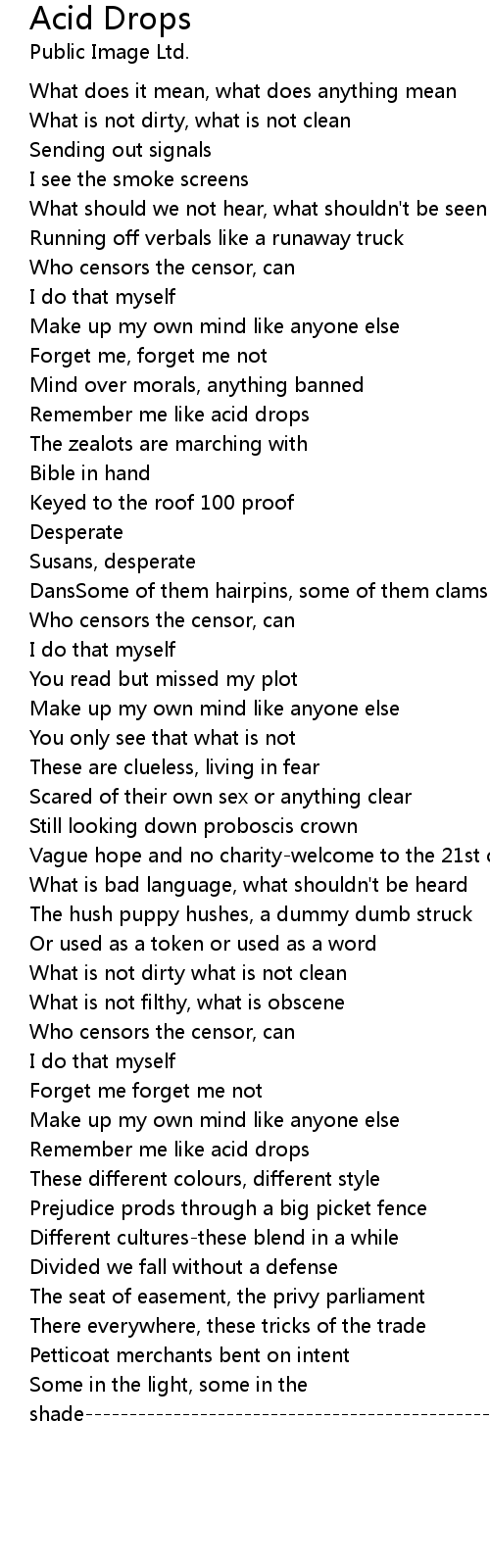 Remember me like acid drops |