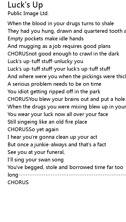 Luck's up-tuff stuff-unlucky you |